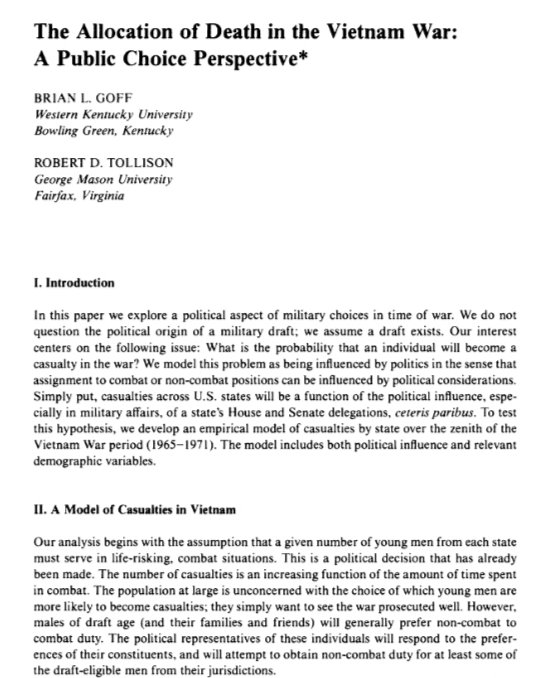 in comparative institutional analysis, constitutional political economy, defence economics, economic history, economics of bureaucracy, economics of crime, law and economics, politics - USA, Public Choice Tags: Vietnam war