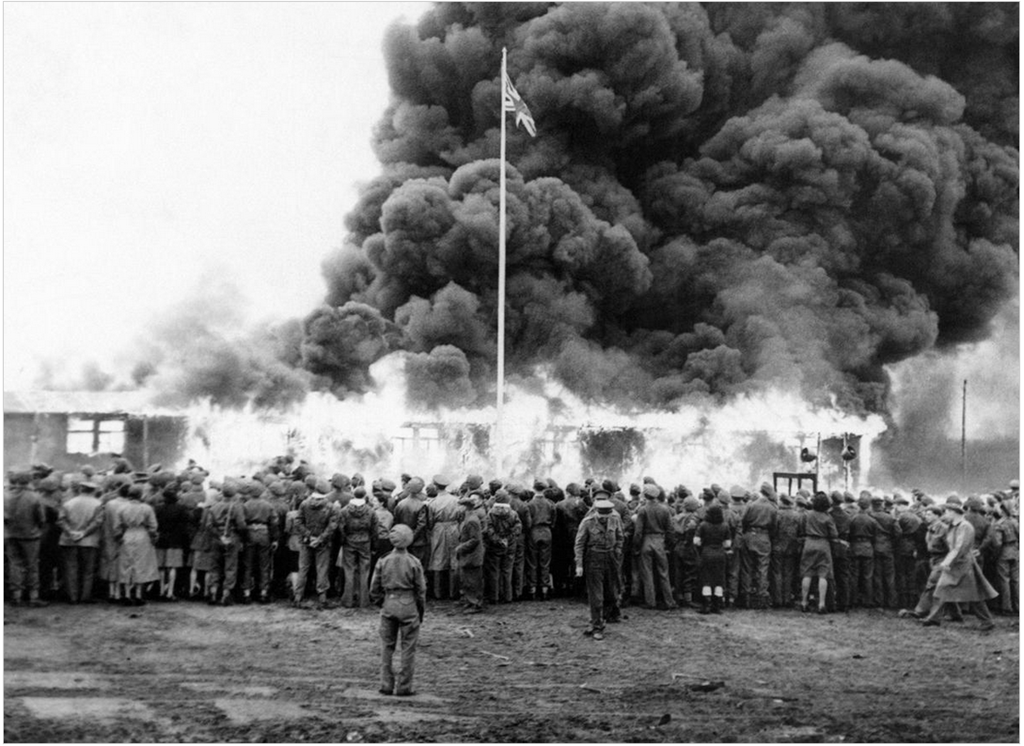 Colonel Bird, Commandant of Belsen Camp, gave the order for the last hut at Belsen Concentration Camp to be burned this day 1945