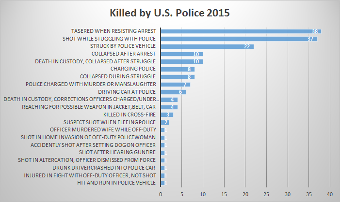 Source: The Counted: people killed by police in the United States in 2015 – interactive | US news | The Guardian.