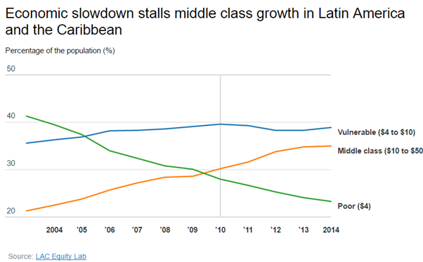 Source: World Bank Economic slowdown puts the brakes on middle class growth in Latin America | The Data Blog