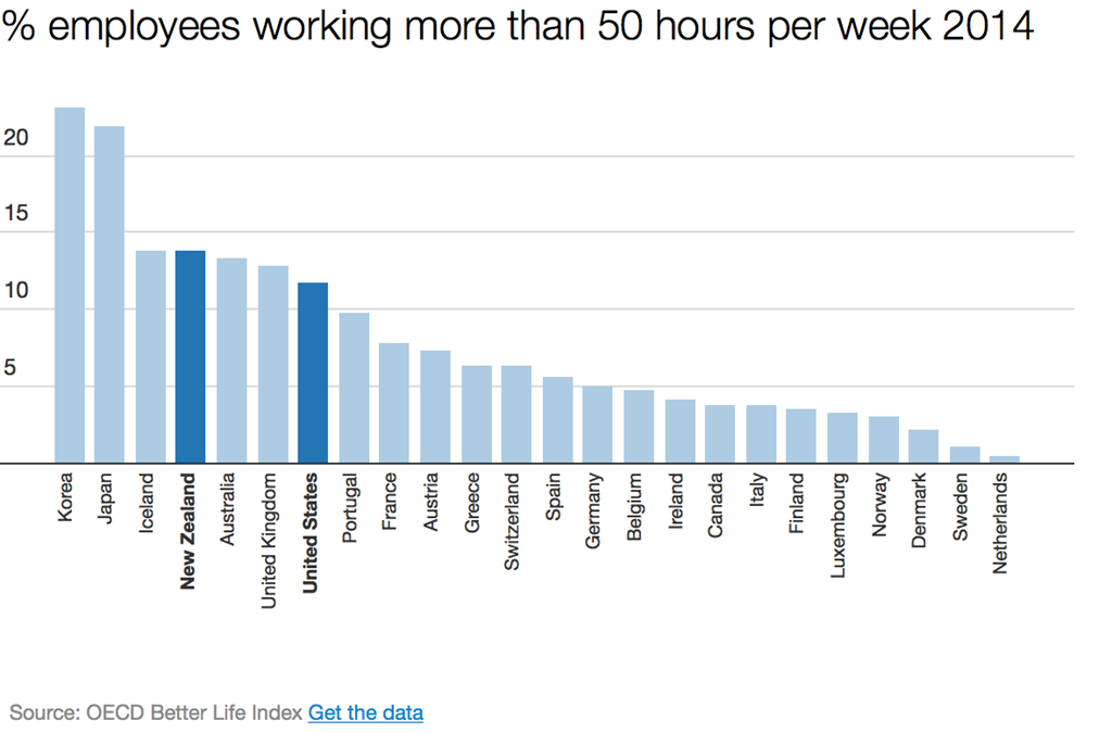 % employees working more than 50 hours per week OECD 2014
